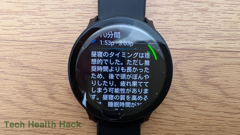 深い睡眠やレム睡眠の内訳も見られて、「昨夜はグッスリだったな!」とか「うわ、寝不足…」と一目で分かります。